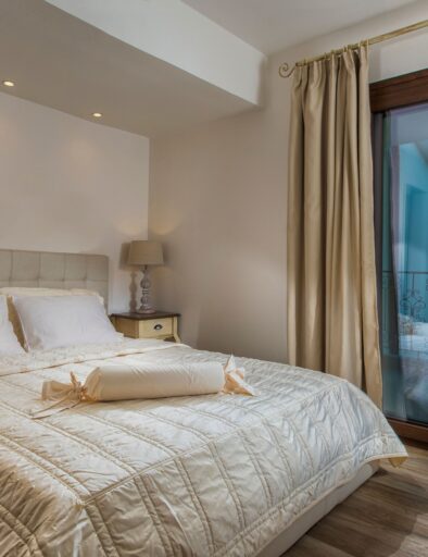 This 20 sq.m. Double Room with a view to the lavish gardens of the Hotel, is ideal for couples, as the Queen-Size bed responds, a beautiful balcony overviewing the lush gardens of the complex, the bathroom comes with a walk-in shower. Your stay is complemented with modern branded amenities, tv, safe deposit box, phone, hairdryer, a refrigerator and a kettle. A/C, individually controlled.